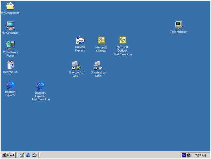 When you turn on your windows 2000 machine you should see your desktop interface something similar like this.