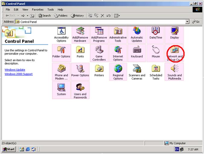 Once the control panel window opened, double left click mouse button on network and Dial-up Connection icon.