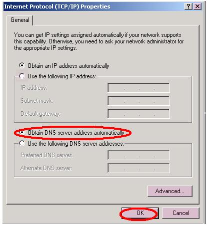 In the TCP/IP Properties’ pop up window, choose Obtain DNS server address automatically and then click on OK to save the settings and close the rest of the opened windows.