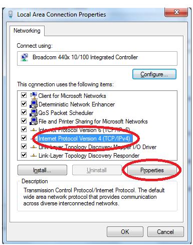 Once you have clicked on the “Properties” button you will be presented by the following window. Left click on the “Internet Protocol Version 4(TCP/IPv4)” option then left click the “Properties” button.